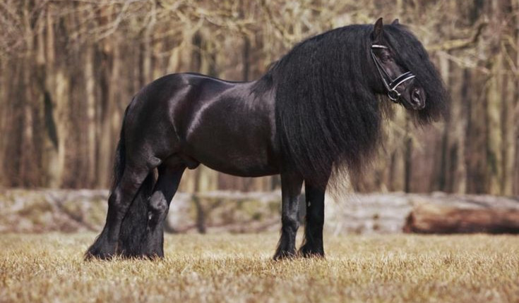 Os membros são robustos, com ossatura consistente e cascos duros de coloração característica, conhecida como “chifre azul”. A pelagem costuma ser preta, mas também há exemplares baios, marrons e cinzas; a variedade pinto é registrada na Seção X. Marcas brancas discretas são aceitáveis, especialmente na face e membros traseiros. A crina e a cauda são longas e fartas, enquanto a plumagem nas pernas é reta e sedosa, lembrando a elegância do Frísio.