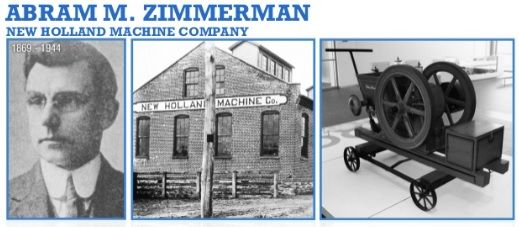 Em 1895, Abram M. Zimmerman fundou uma oficina de conserto de equipamentos agrícolas na cidade de New Holland, Pensilvânia. Ele logo começou a fabricar seus próprios produtos, incluindo moinhos de ração e motores estacionários com sistemas de refrigeração inovadores. Em 1903, sua empresa foi incorporada como New Holland Machine Company, expandindo-se rapidamente e diversificando sua linha de produtos.