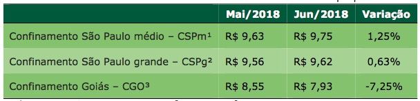 Tabela 1. Comparativo de custos da diária-boi (CDB) entre os meses de maio e junho de 2018