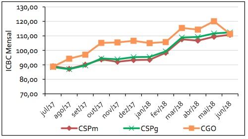 Gráfico 1. Variação dos índices de custos entre julho de 2017 e junho de 2018