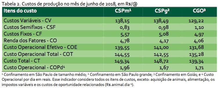 Na décima terceira edição do Índice de Custo de Produção de Bovinos Confinados (ICBC), identificou que os custos da diária-boi (CDB) foram de R$ 9,75, R$ 9,62 e R$ 7,93 para os confinamentos de São Paulo médio (CSPm), grande (CSPg) e de Goiás (CGO), nesta ordem.
