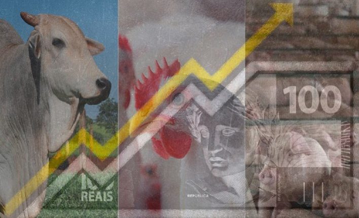 Assim, o valor alcançado pelo farelo de soja em 2022 foi mais de 125% superior à média de 2019, índice não muito diferente do apresentado pelo milho, que aumentou quase120%. Azar, frente a esse quadro, de avicultores, suinocultores e pecuaristas. Porque o preço do boi em pé foi corrigido em não mais que 90%, o do frango vivo em, aproximadamente, 75%, e o do suíno em apenas 40%, ou seja, cerca de um terço do aumento obtido por suas principais matérias-primas.