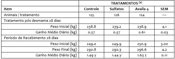 Tabela 1. Efeito do Availa 4(a) na desmama.