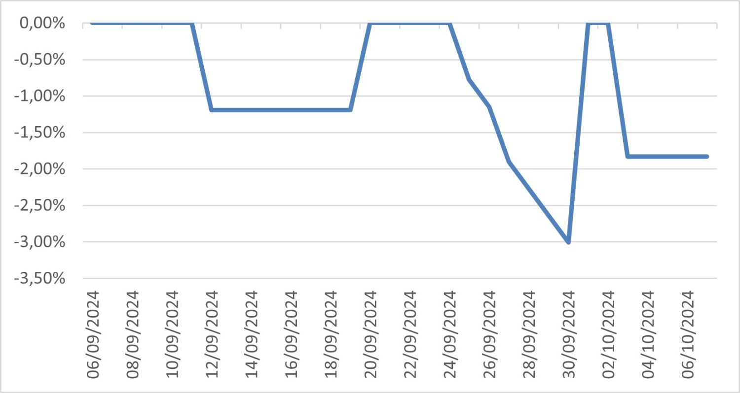Diferencial de base entre Três Lagoas, Mato Grosso do Sul e São Paulo – 6 de setembro a 6 de outubro de 2024.