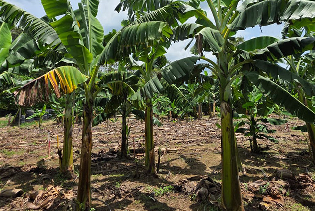 As primeiras mudas in vitro chegaram ao País em janeiro de 2022 e foram para a estação quarentenária do ICA, onde permaneceram por oito meses para confirmar a ausência de fungos, bactérias, vírus e nematoides exóticos. Depois da quarentena, foi feita a inoculação do patógeno nas plantas em casa de vegetação e, em seguida, as mudas seguiram para testes em tanques de água com solo contaminado com a doença. “Quando estavam maiores, a BRS Princesa e a BRS Platina passaram para o campo, em área que já tinha a doença”, relata Mónica Betancourt, pesquisadora sênior da AgroSavia. Ela é a responsável da Corporação no convênio com a Embrapa e a Associação de Bananicultores da Colômbia (Augura) e líder da equipe de pesquisa. A Augura também apoia financeiramente o projeto, que encontra-se em sua primeira fase (de 2021 a 2026).