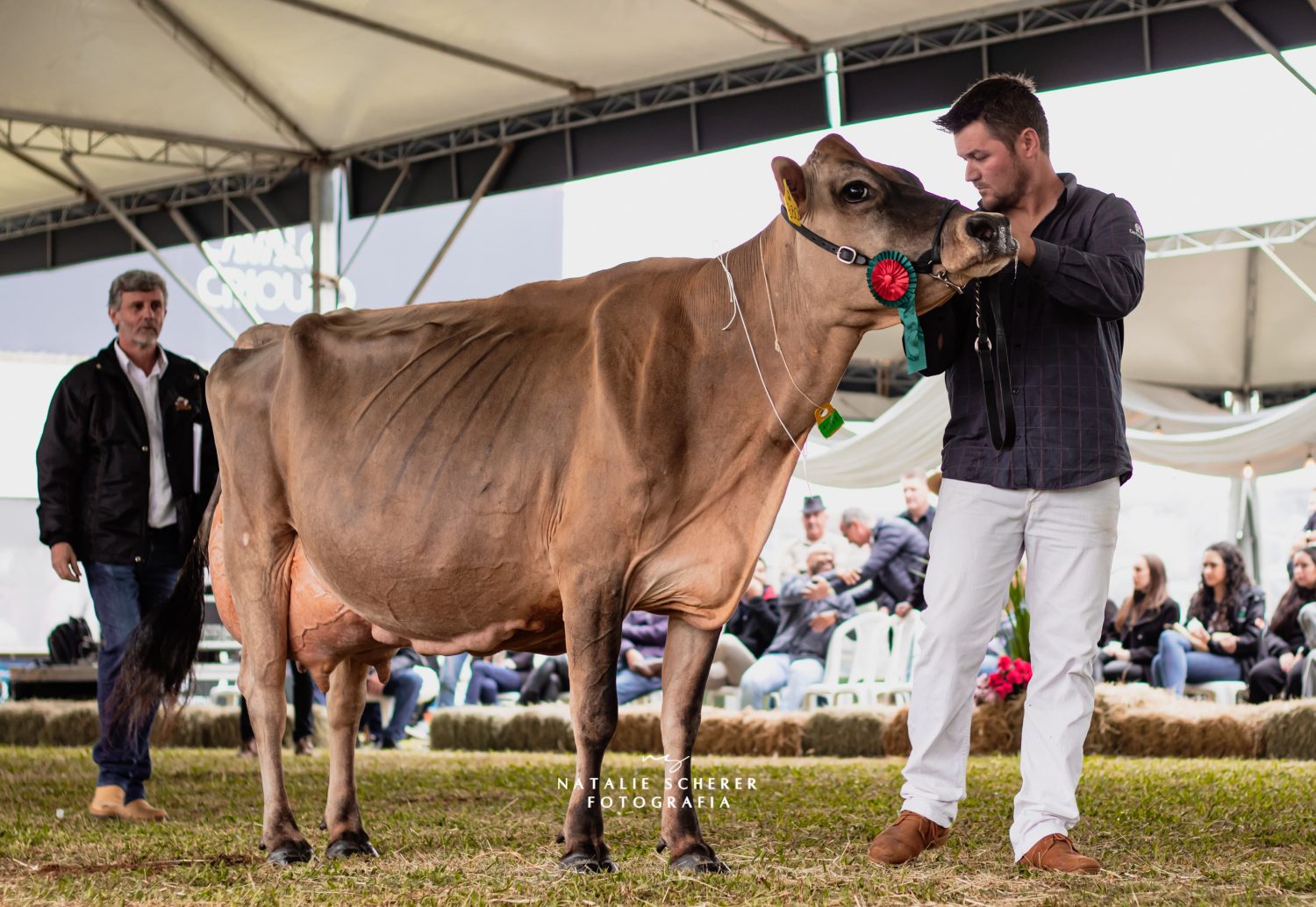 Em um feito histórico para a raça Jersey, a vaca NANDA CELEBRITY AVISTOSO se destacou como a Suprema Campeã nas duas principais feiras agropecuárias do Brasil em 2024: a AGROLEITE, em Castro-PR, e a EXPOINTER, em Esteio-RS. Esta façanha coloca NANDA como a melhor representante de sua raça entre todas as raças leiteiras presentes, um feito que celebra a excelência genética e o trabalho árduo da equipe da Agropecuária Fortaleza, de Carlos Jacob Wallauer, de Salvador do Sul – RS.