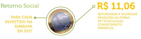 Prestes a completar 45 anos no próximo dia 26 de abril, a Embrapa anunciará na semana que vem os resultados do seu novo Balanço Social, elaborado a partir da avaliação do impacto de 113 tecnologias e de cerca de 200 cultivares adotadas e disponibilizadas em 2017. O estudo, cujos detalhes só serão anunciados em uma solenidade no dia 24, em Brasília-DF, mostrará um lucro social de R$ 37,18 bilhões no ano passado e que para cada real aplicado na Empresa foram devolvidos R$ 11,06 para a sociedade.