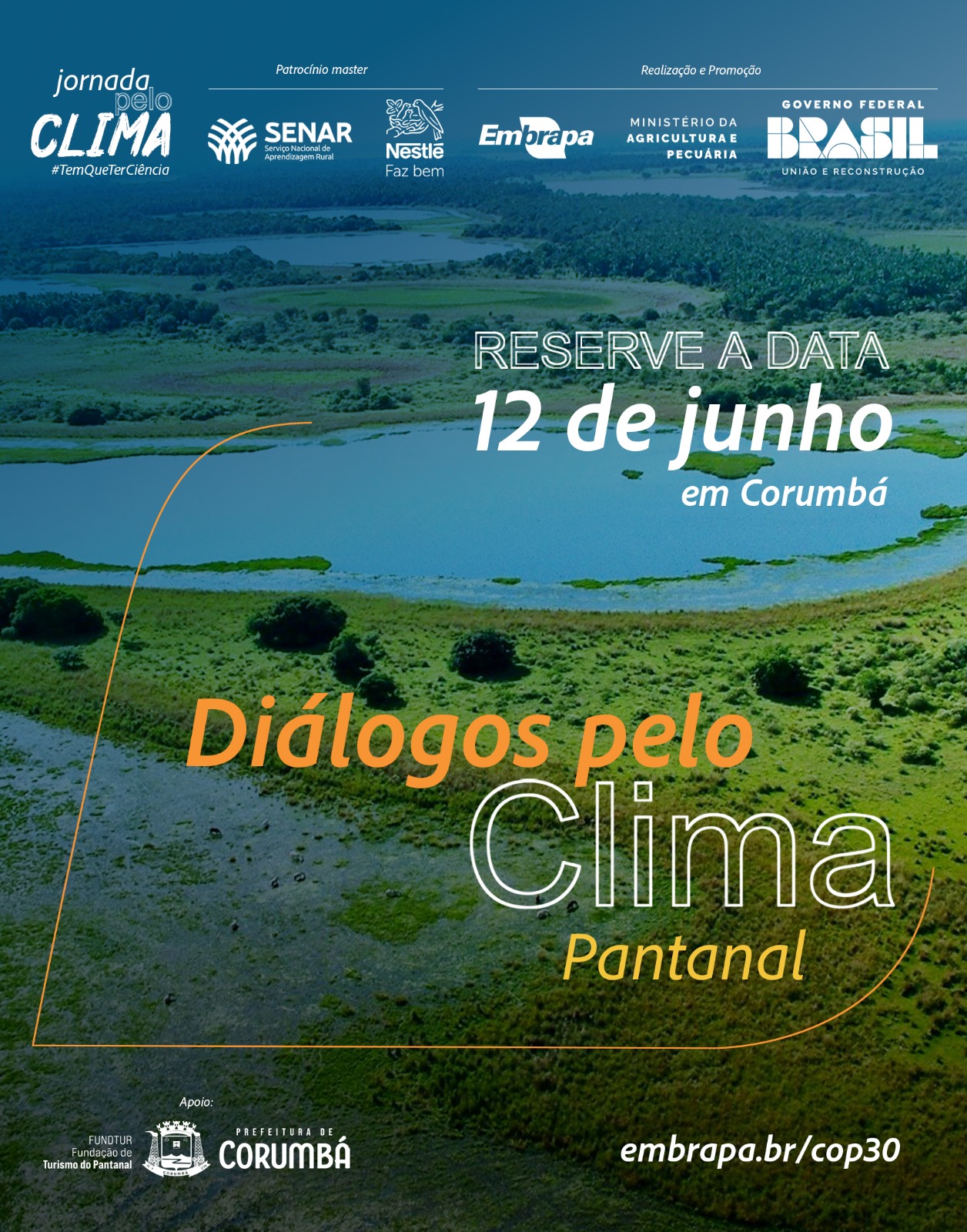 O circuito de eventos compõe a Jornada pelo Clima, projeto de grande envergadura que evidencia a ciência na agropecuária brasileira como um pilar essencial para a transformação sustentável. A Jornada pelo Clima conta com patrocínio master do Serviço Nacional de Aprendizagem Rural (Senar), no bioma local da Caixa Econômica Federal e apoio da Prefeitura Municipal de Corumbá.