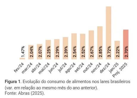 Segundo a Abras, a expectativa é de crescimento de 2,7% no dispêndio com o consumo de alimentos nos lares em 2025. Em fev/25 comparado com o mesmo mês do ano passado, registrou-se aumento no valor vendido de leite (5%), leite condensado (7%), leite em pó (9%) e iogurte (10%). Com a proximidade da Páscoa, que é um dos períodos de maior volume de vendas no varejo alimentar brasileiro, há expectativa de incremento nas vendas de queijos. A sazonalidade, aliada ao ambiente de recuperação da renda, deve impulsionar o consumo desses produtos.