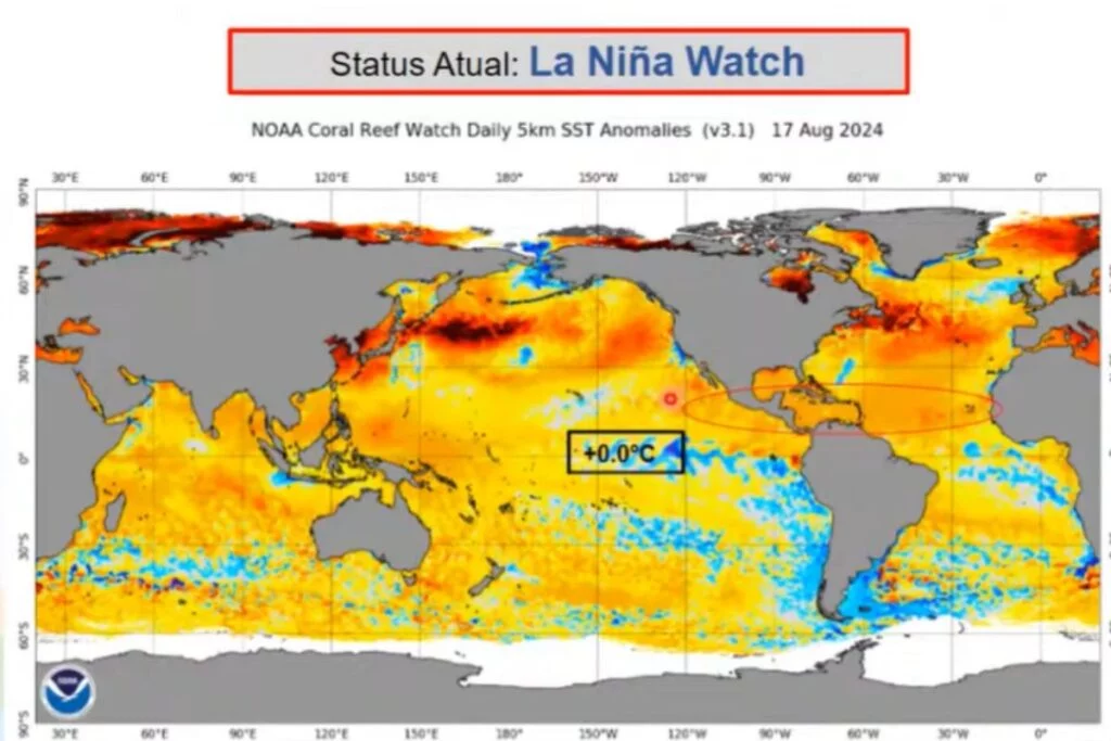 Segundo o meteorologista, o momento atual é de neutralidade climática, porém, a maior probabilidade de ocorrência do La Niña é para os meses de outubro, novembro e dezembro. Nesse período, as projeções indicam 75% de chance do fenômeno.