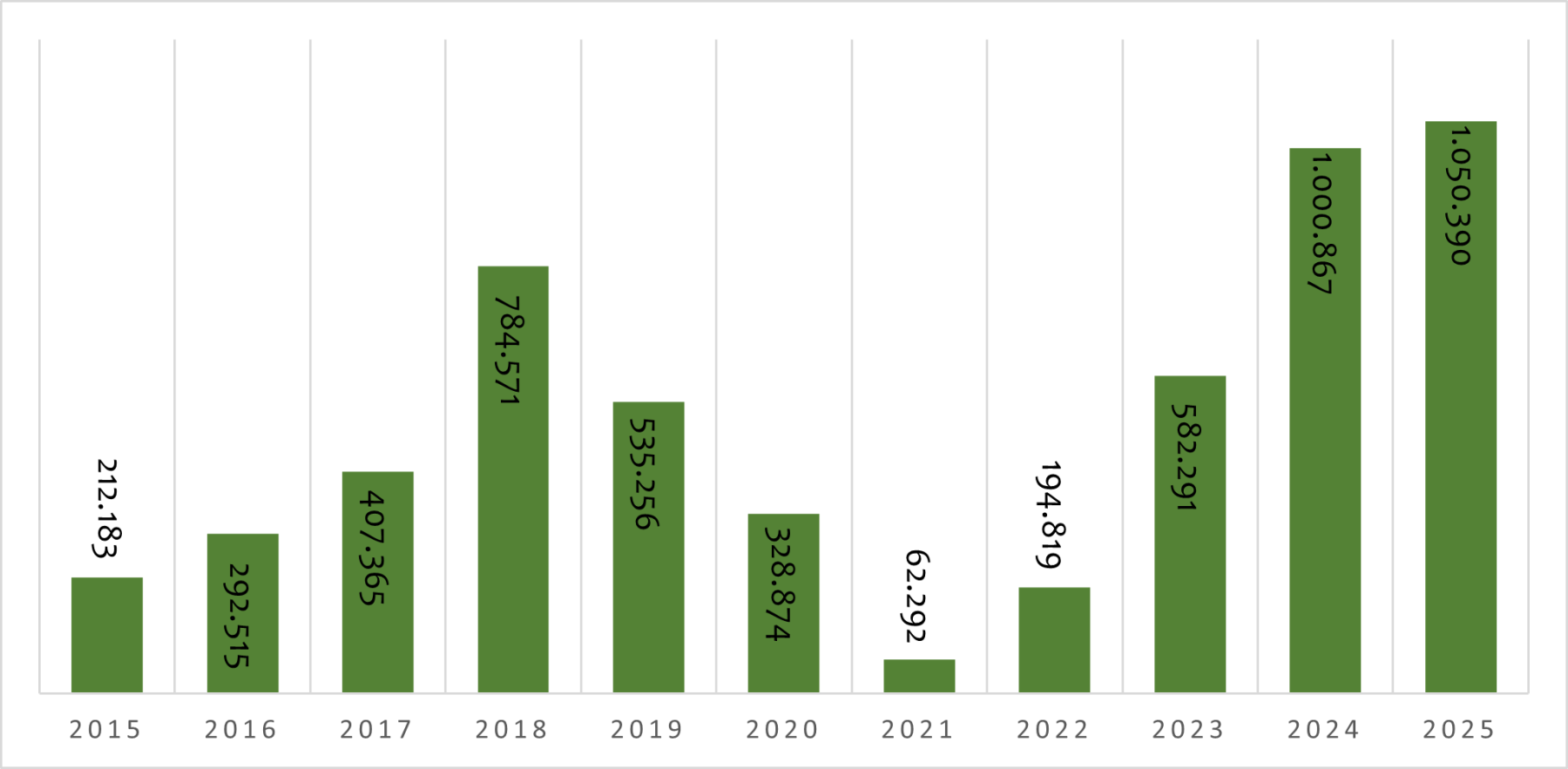 Esse desempenho ocorre na esteira de um marco histórico: em 2025, o Brasil exportou 1,05 milhão de bovinos vivos, o maior volume já registrado, superando inclusive o resultado de 2024, que até então era o melhor da série.