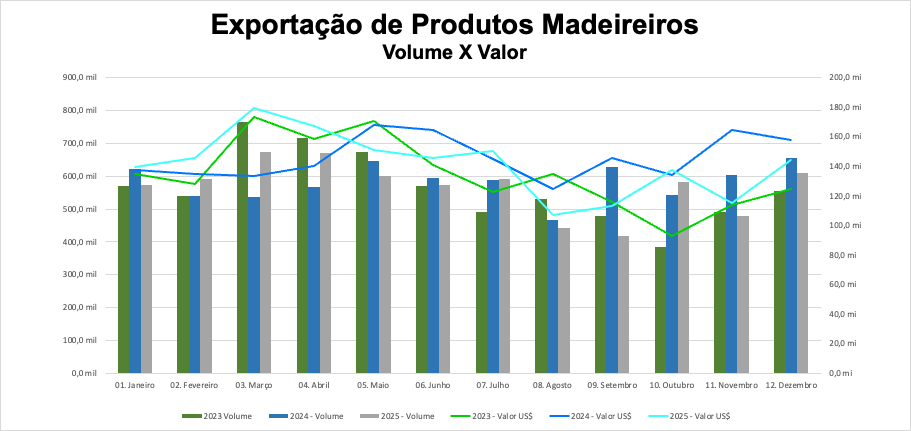 Em análise feita pela WoodFlow, as exportações de produtos madeireiros apresentaram queda de 3% em volume e valores na comparação entre 2025 e 2024. Os dados são do portal ComexStat. Na avaliação do CEO da WoodFlow, Gustavo Milazzo, o ano de 2025 foi desafiador para o setor, com fatores internos e externos que influenciaram nas negociações.