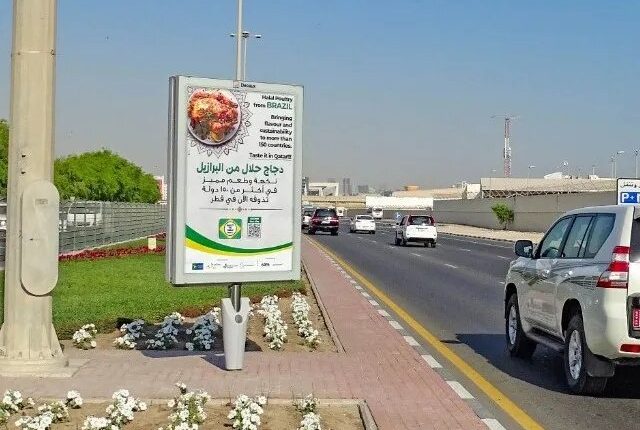 Com a mensagem “Frango Halal do Brasil: trazendo sabor e sustentabilidade para mais de 150 países. Experimente no Catar!” (escritas em árabe e em inglês), os painéis buscam reforçar a presença brasileira como principal fornecedor da proteína avícola, tanto para o mercado catari, como para todo o mercado internacional islâmico.