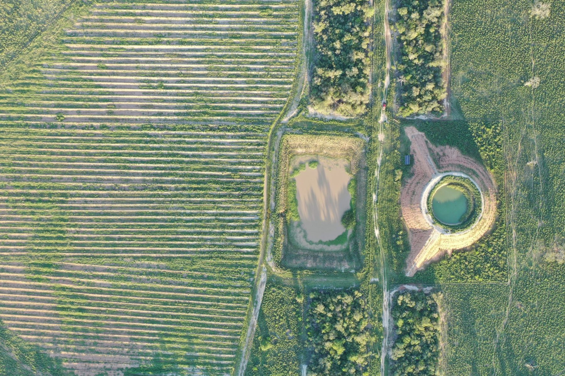 A fazenda conta com robusta infraestrutura hídrica e operacional. Cerca de 80% da água utilizada é proveniente da captação de chuva no período úmido (novembro a abril), armazenada em grandes represas e bombeada por sistemas solares .