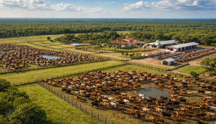 Para efeito comparativo, poucas propriedades na América do Sul combinam domínio pleno da terra, escala acima de 40 mil hectares e quase 50 mil cabeças em operação contínua.
