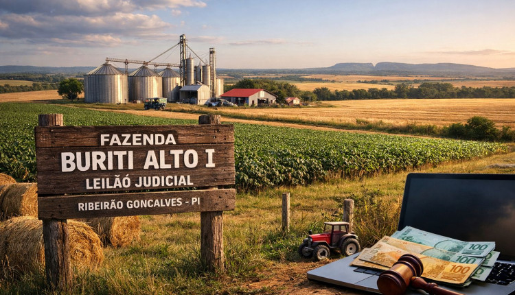 Propriedade no sul do Piauí será ofertada em pregão judicial 100% online e pode ter lance mínimo reduzido para R$ 3,6 milhões no segundo pregão; Fazenda produtiva fica em região com forte expansão de grãos na fronteira agrícola do Matopiba.