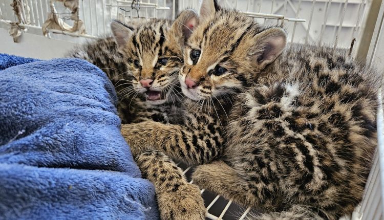 Filhotes de jaguatirica resgatados em MG recebem cuidados intensivos no HVU da Uniube e serão encaminhados para reabilitação e soltura.