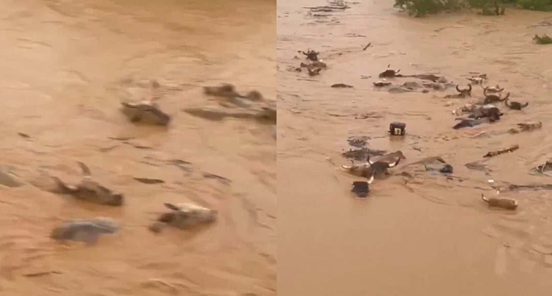 Gado é arrastado por rio após forte tempestade; Vídeo