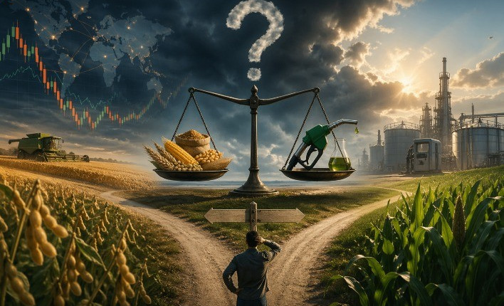 As incertezas globais e alta das commodities reacendem debate entre produção de alimentos e biocombustíveis.