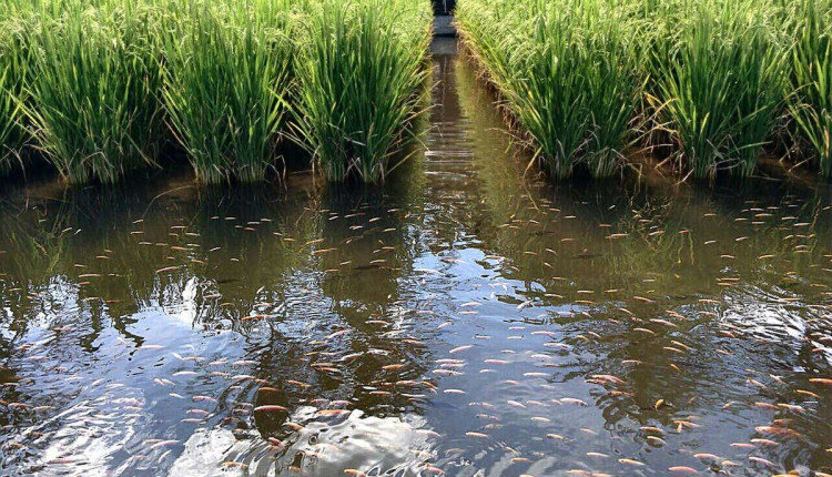 No sistema mina padi, os arrozais permanecem alagados durante grande parte do ciclo produtivo. Nesse ambiente aquático, são introduzidos peixes como carpas, tilápias e bagres, em densidades ajustadas ao tamanho da área e ao volume de água disponível. Cada hectare pode receber centenas de alevinos, o que explica como o número total integrado ao sistema chega facilmente à casa dos milhões.