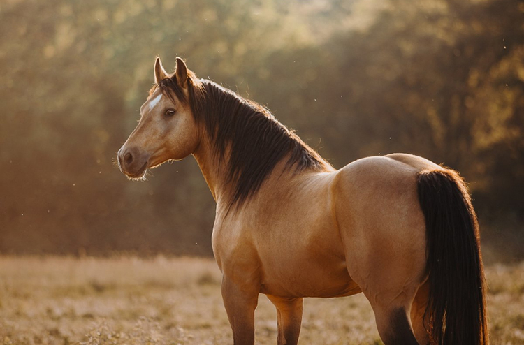 Entre as marcas primitivas mais típicas estão a faixa dorsal, as listras nas pernas, o contorno escuro nas orelhas, e o padrão em “teia” na testa, que reforçam a rusticidade e a origem selvagem dessa linhagem.