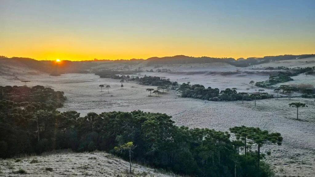 E a previsão é de que o frio continue sobre o Paraná. Nesta terça-feira, o Instituto Nacional de Meteorologia (Inmet) emitiu um novo alerta laranja para risco de geadas para parte do estado nos próximos dias. Além do Paraná, o alerta também se estende a partes de Santa Catarina e do Rio Grande do Sul. Conforme o Inmet, com temperaturas entre 0ºC e 3ºC, há risco de estragos em plantações.