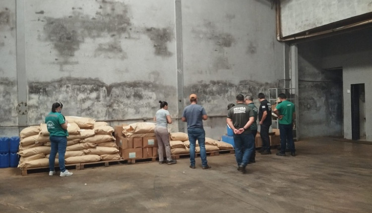 Durante a fiscalização, foi identificado um depósito clandestino com mais de uma tonelada de defensivos agrícolas irregulares e cerca de 200 litros de produtos vencidos. Os materiais estavam acondicionados em sacos com rotulagem em língua estrangeira incompatível com a tradução impressa no produto, em desacordo com a legislação brasileira.