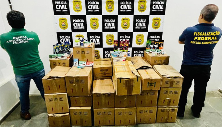 Fiscalização identificou mais de 28 mil itens irregulares em Tocantins/MG e Piraúba/MG, incluindo medicamentos, alimentos destinados a animais e fertilizantes.