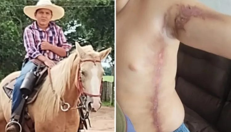 Pela foto, é possível ver que o menino teve uma espécie de queimadura, por conta do acidente. Sobre os ferimentos, o professor Ítalo falou que Edison teve “sorte” por não terem sido mais graves.