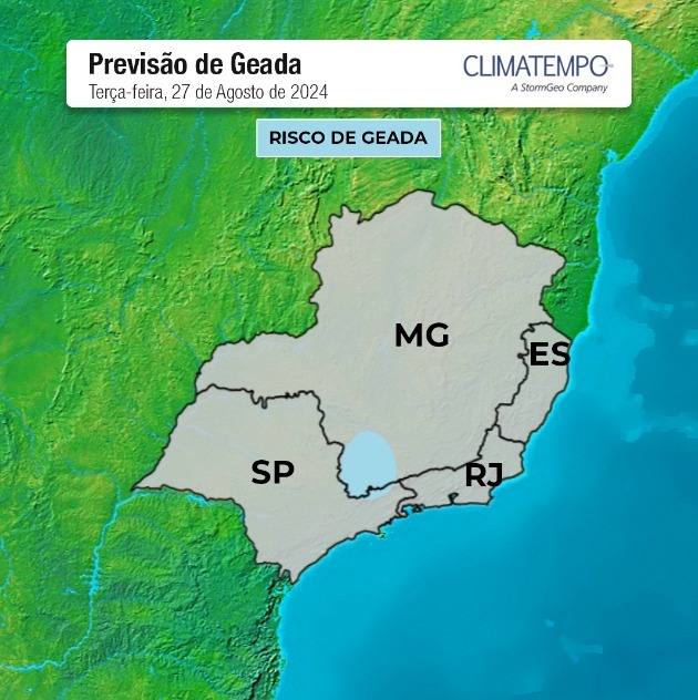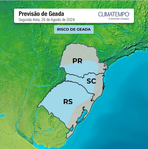 As temperaturas mínimas devem atingir valores abaixo de 10°C em diversas áreas produtoras de cana, principalmente do Paraná, sul de Mato Grosso do Sul, na metade leste de São Paulo e no sul de Minas, onde as temperaturas podem chegar em torno de 5°C a 6 °C. Áreas pontuais podem registrar geadas, de forma isolada e fraca.