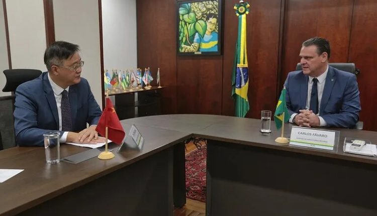 O ministro da Agricultura e Pecuária, Carlos Fávaro, recebeu o embaixador da China no Brasil, Zhu Qingqiao, em reunião realizada na quinta-feira (23) para prestar todos os esclarecimentos sobre o trabalho que está sendo desenvolvido pelo governo brasileiro para monitoramento do caso de Encefalopatia Espongiforme Bovina (EEB) confirmado em um animal no município de Marabá (PA).