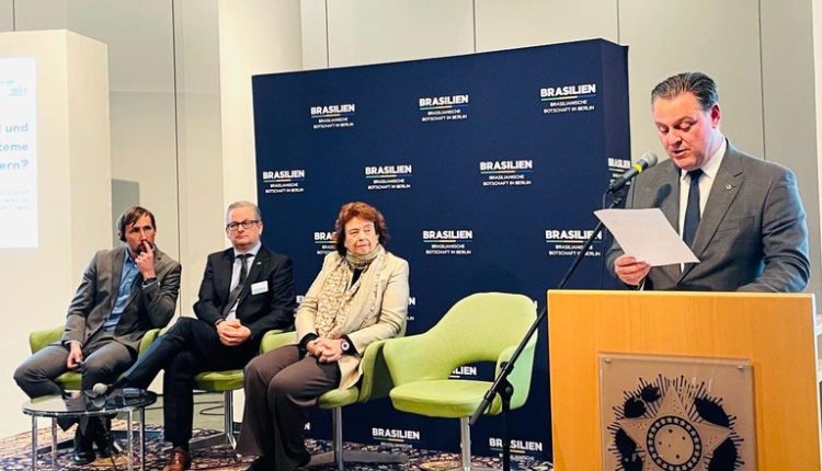 O Ministro da Agricultura e Pecuária, Carlos Fávaro, disse nesta sexta-feira (20), em evento na Embaixada do Brasil em Berlim, que é possível alcançar uma relação harmoniosa e complementar entre a produção agropecuária e a preservação ambiental. Durante o fórum “Como Alemanha e Brasil podem mudar sistemas alimentares?”, Fávaro destacou que as tecnologias desenvolvidas no Brasil têm contribuído para adaptar a produção agrícola às mudanças climáticas, mas ainda é preciso enfrentar o desafio do desmatamento.