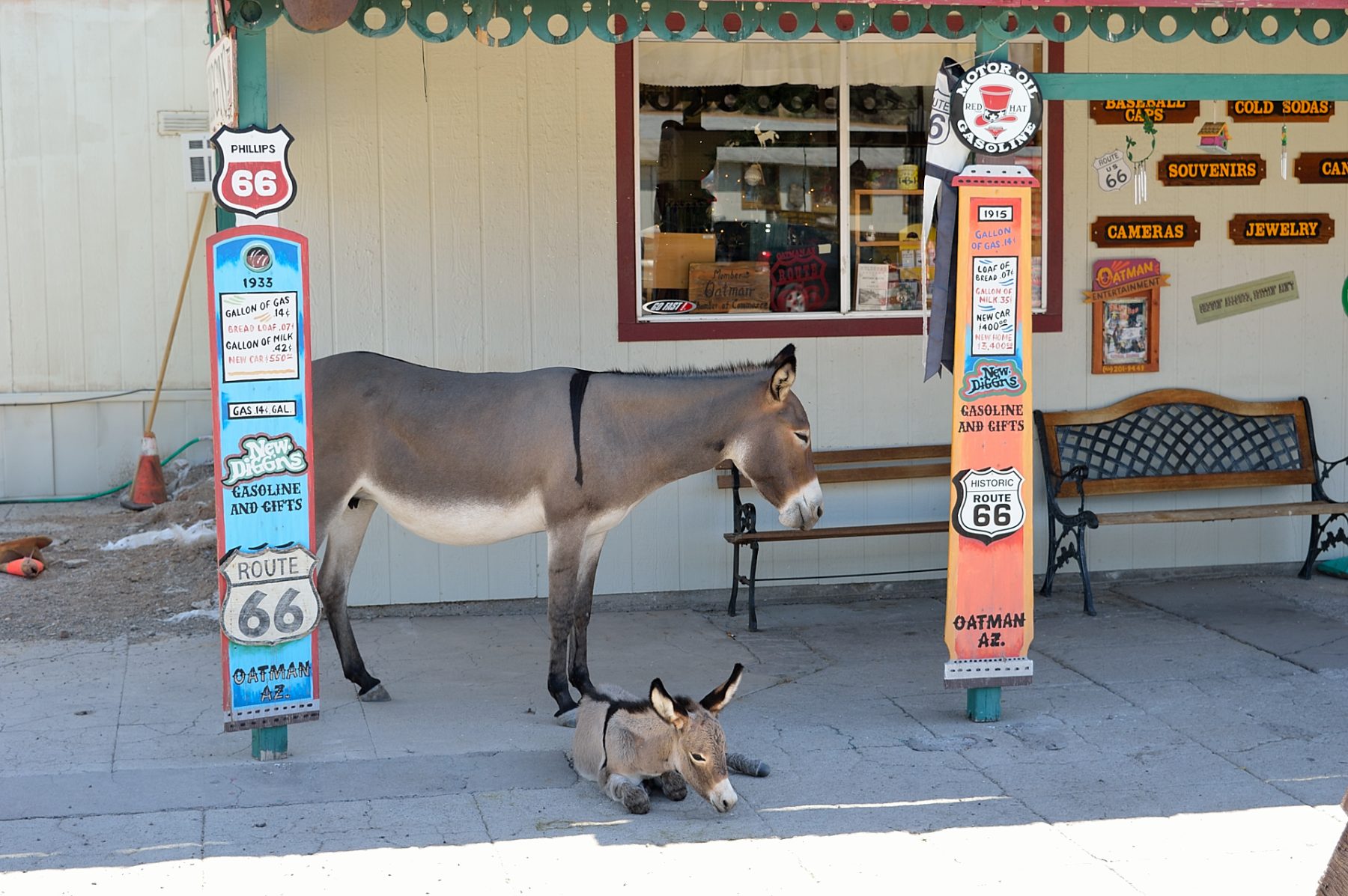 Os burros de Oatman são descendentes diretos desses animais históricos. Apesar de viverem em liberdade, tornaram-se domesticados ao seu próprio modo: aparecem todos os dias na cidade em busca de atenção, comida e flashes fotográficos, e são uma das principais razões pelas quais Oatman atrai milhares de turistas anualmente.