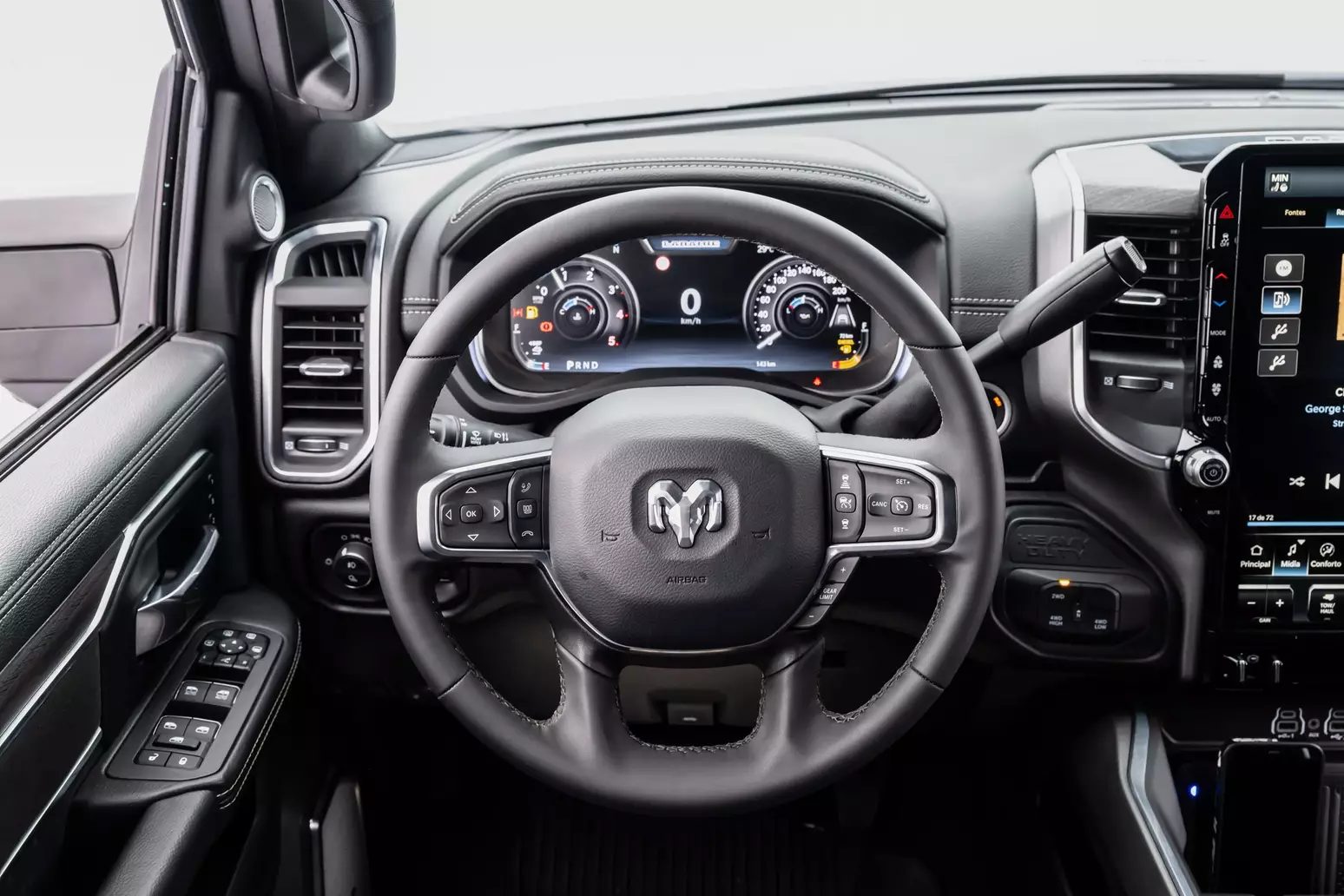 | 2500 Laramie | R$ 559.990 | +R$ 70 mil | Nova grade, faróis e rodas 18”, central de 12”, ADAS avançado, câmeras 360°, Ram Connect, bancos em couro bege/marrom, som Alpine |