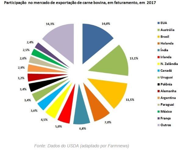 Vamos a real colocação do Brasil dentro do ranking de faturamento dos exportadores de carne, dados de 2017: