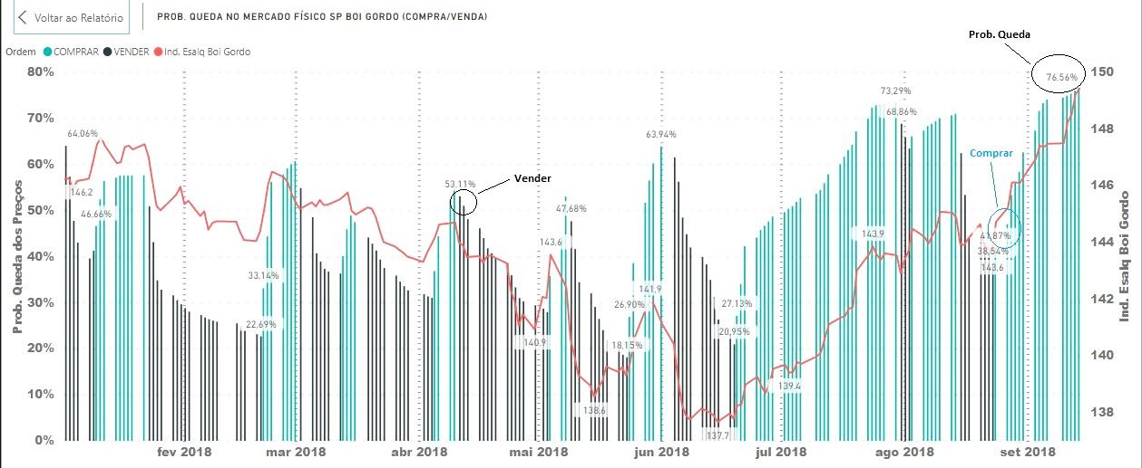 O programa Pecuária de Decisão foi criado para melhorar e dar mais segurança nas decisões de comercialização de bovinos e insumos. Além das ferramentas de análise de oferta e demanda que apresentam com grande antecedência informações como produção e consumo, o programa oferece as análises da Ferramenta de Probabilidade de Queda: Mercado do Boi e Mercado do Milho. Esta ferramenta foi criada para indicar oportunidades de compra ou venda dos animais e insumos aos agentes da cadeia.