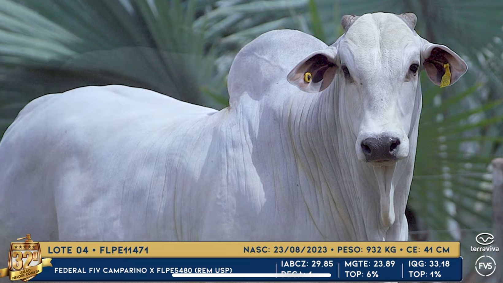 Um dos animais de maior destaque estará disponível através do Lote 04. O touro FLPE11471 da Cometa tem potência, equilíbrio funcional e genética de impacto, é filho do Federal FIV Camparino x FLPE5480 (REM USP), Nasc.: 23/08/2023, Peso: 932 kg, circunferência escrotal (CE): 41 cm, IABCZ: 29,85 (Deca 1) • MGTE: 23,89 (Top 6%) • IQG: 33,18 (Top 1%), um touro pronto para entregar evolução real ao rebanho.