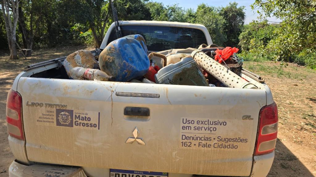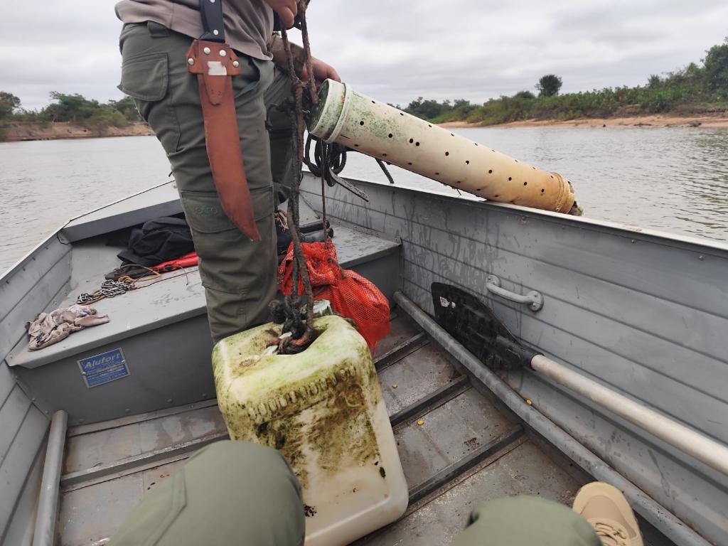 No total foram apreendidas mais de 500 unidades de peixes, além de cinco quilos de carne de jacaré, um freezer, três tablados, dois molinetes, uma tarrafa, além de ser feita a retirada de 62 cevas fixas da margem direita do Rio Cuiabá, na área da RPPN Sesc Pantanal.