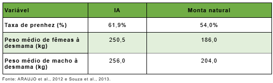 Indicadores: inseminação artificial vs. monta natural.