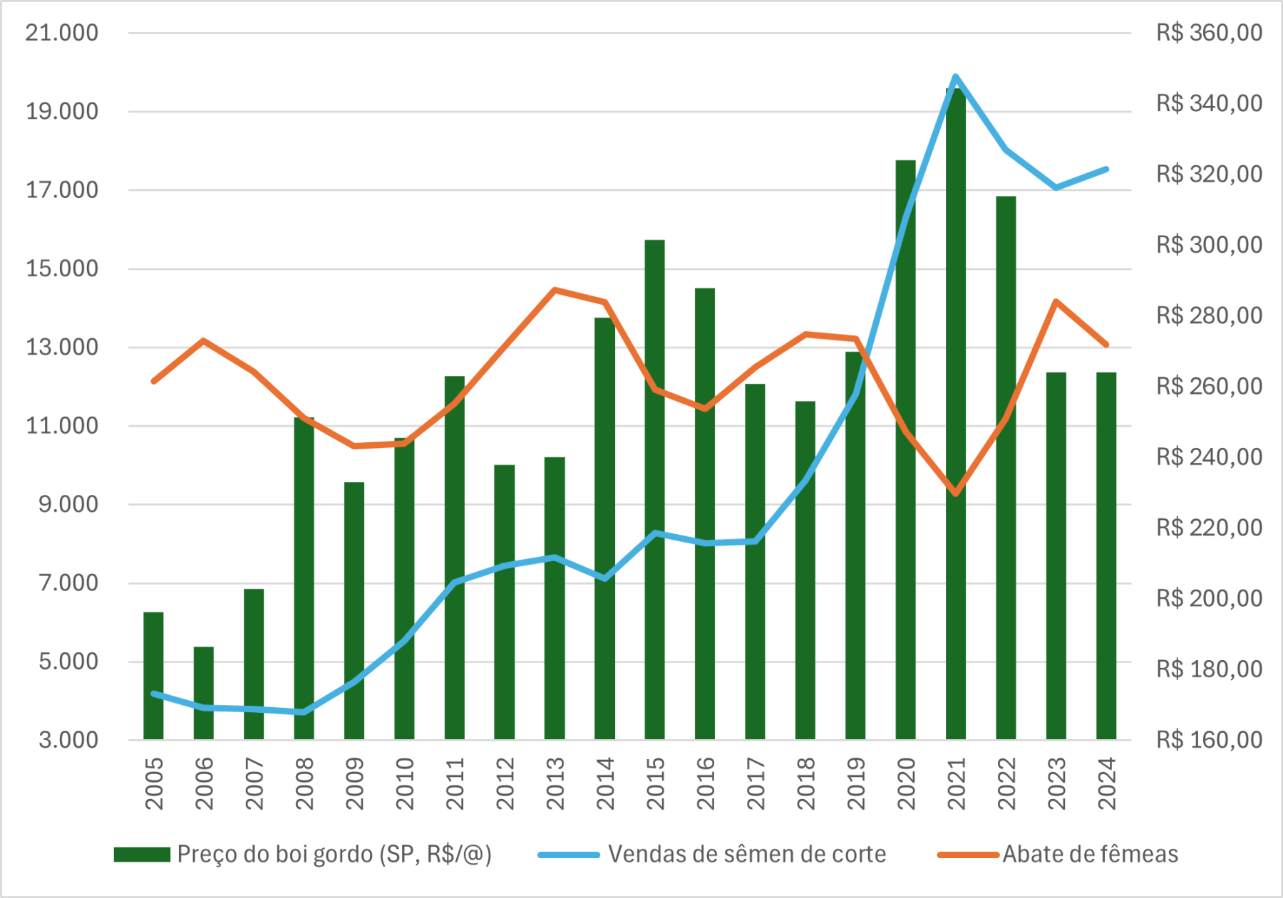 Em 2021, com a fase de alta do ciclo pecuário de preços (menor abate de fêmeas e preços em ascensão), as vendas de sêmen aumentaram, tendo sido recorde.