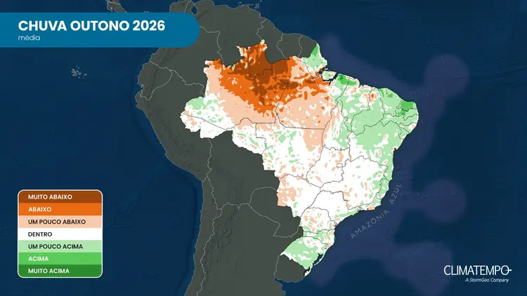 No outono de 2026, a maioria das áreas do Sudeste e do Centro-Oeste devem ter um volume de chuva próximo da média. As pancadas de chuva serão frequentes em abril, mas o clima começa a secar e esfriar na segunda quinzena de maio. As frentes frias avançam pela costa do Sudeste e vão ajudar a manter muita nebulosidade e chuva no leste de São Paulo, no Rio de Janeiro e no Espírito Santo.
