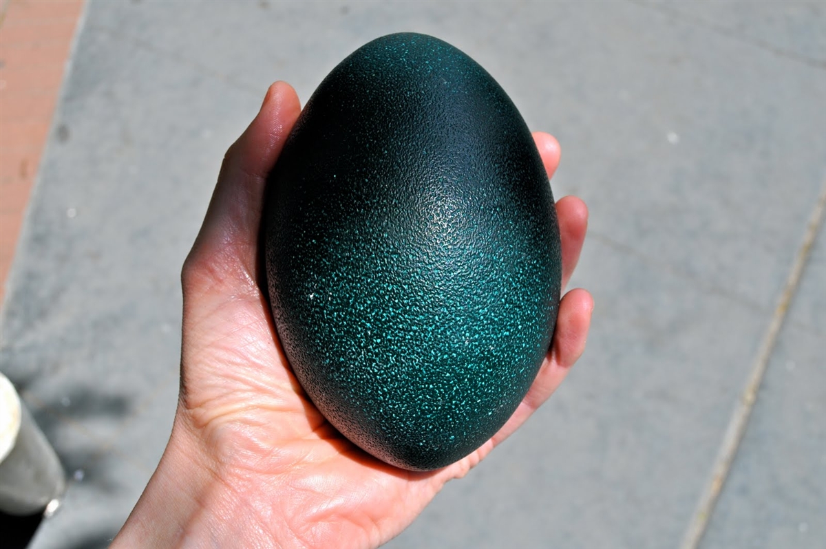 Ovo de Emu australiano – segunda maior ave do mundo, podendo atingir 1,9 metro de altura, pesar até 45 kg e correr a 50 km/h -, pode pesar até 700 g, equivale a 11 ovos de galinha e custa mais de R$ 800 a unidade.