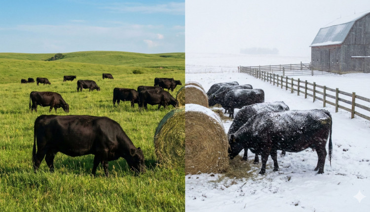 O inverno é o divisor de águas que define como os americanos alimentam o gado. Em estados produtores chave como Texas, Nebraska e Kansas, a neve ou as secas extremas impedem o pastejo contínuo. É neste momento que o feno (hay) se torna a base da sobrevivência e manutenção do escore corporal.