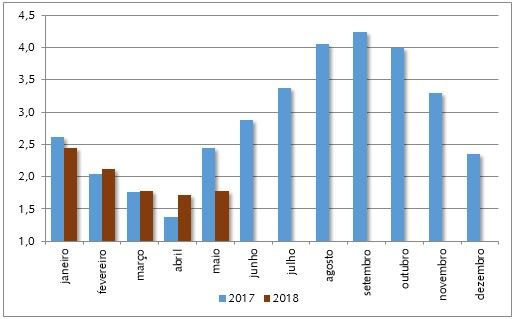 Segundo levantamento da Scot Consultoria, o preço da ureia agrícola subiu 7,4% no acumulado desde janeiro último e o insumo está custando 13,2% a mais na comparação com maio de 2017 (figura 2). Para os adubos potássicos e fosfatados as altas anuais foram de 5,5% e 8,0%, respectivamente.