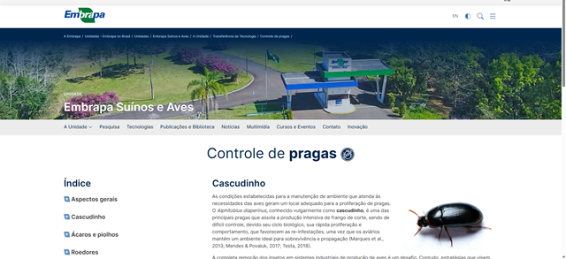 Cascudinho – Os pesquisadores reuniram material completo sobre o cascudinho, que podem ser acessados no portal da Embrapa Suínos e Aves por meio da página do projeto ou clicando aqui.