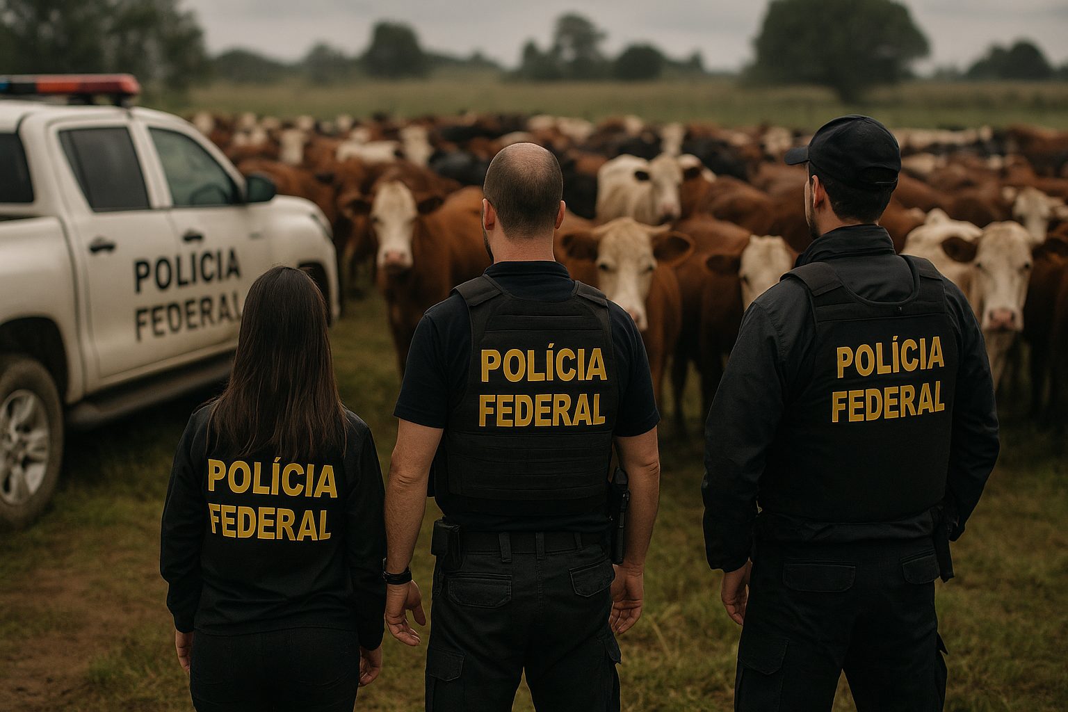 Ação conjunta da PF, MPF, Mapa, Seapi e Cidasc busca desarticular esquema milionário de contrabando de gado em território brasileiro, colocando em risco a sanidade animal e o setor produtivo.