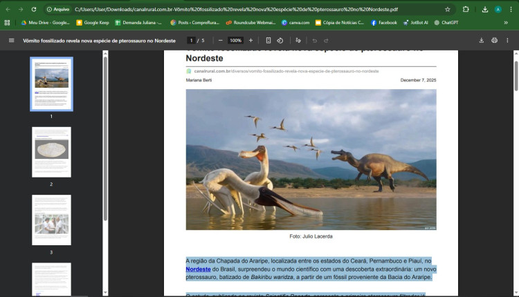Pesquisadores descobrem nova espécie de pterossauro em vômito fossilizado no Nordeste, revelando interações ecológicas antigas