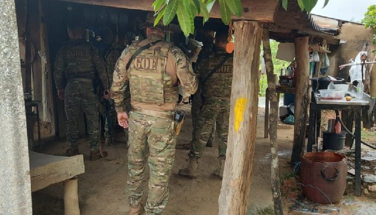 A equipe da Delegacia de Chapada dos Guimarães fez diligências na fazenda, com apoio da Gerência de Operações Especiais (GOE) e além das prisões em flagrante de C.S.C., de 42 anos, e J.M.C., de 66 anos, as equipes apreenderam duas espingardas, um facão e munições.
