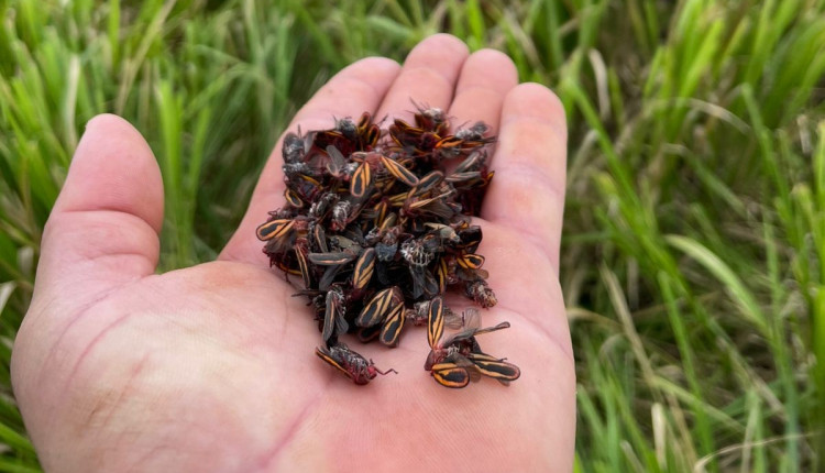 Nas pastagens, especialmente após as chuvas, as cigarrinhas encontram condições ideais para a proliferação. Esse inseto sugador, ao atacar gramíneas forrageiras, injeta toxinas que bloqueiam os vasos da planta, provocando amarelecimento, seca das folhas e queda na produção de biomassa e matéria seca. “Na época das chuvas, o pasto deveria estar bem verde, e quando você vê o que aconteceu com a infestação da cigarrinha, os pastos secando justamente nesse período, a decepção é enorme”, afirma Prata.