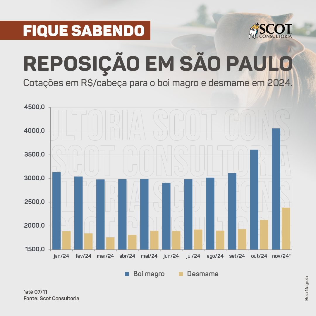 A forte demanda por parte de recriadores e invernistas tem sido um dos principais fatores por trás da elevação nos preços dos animais de reposição. De acordo com Mariana Guimarães, médica-veterinária e analista da Scot Consultoria, há tempos o mercado não observa uma estabilização nos preços dos bovinos não-terminados. A procura aquecida reflete um cenário de escassez de oferta, sustentando os preços em níveis elevados.